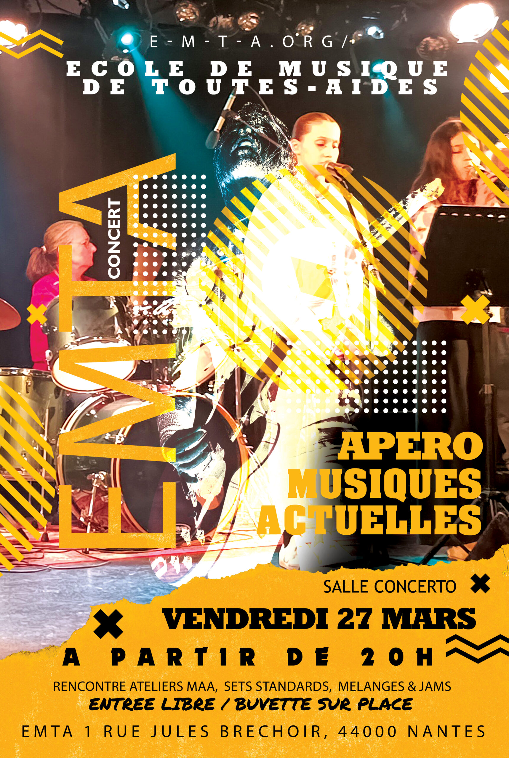 L’association École de Musique de Toutes Aides est acteur de la culture musicale nantaise depuis 1989. Sa mission est d’offrir à ses adhérents, de tous âges, de tous niveaux et horizons musicaux, les moyens de recevoir un enseignement adapté à leur appétit musical.